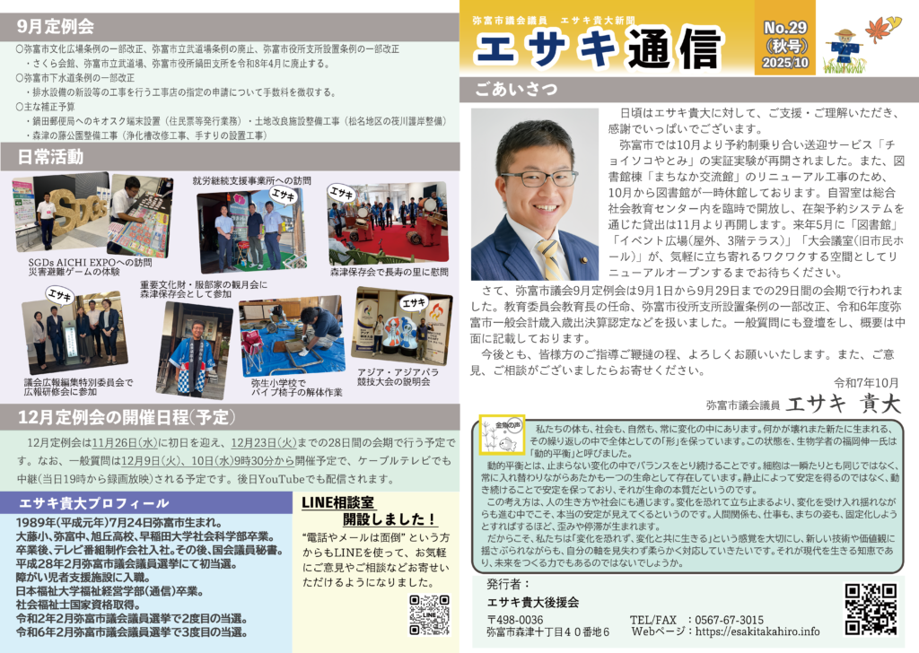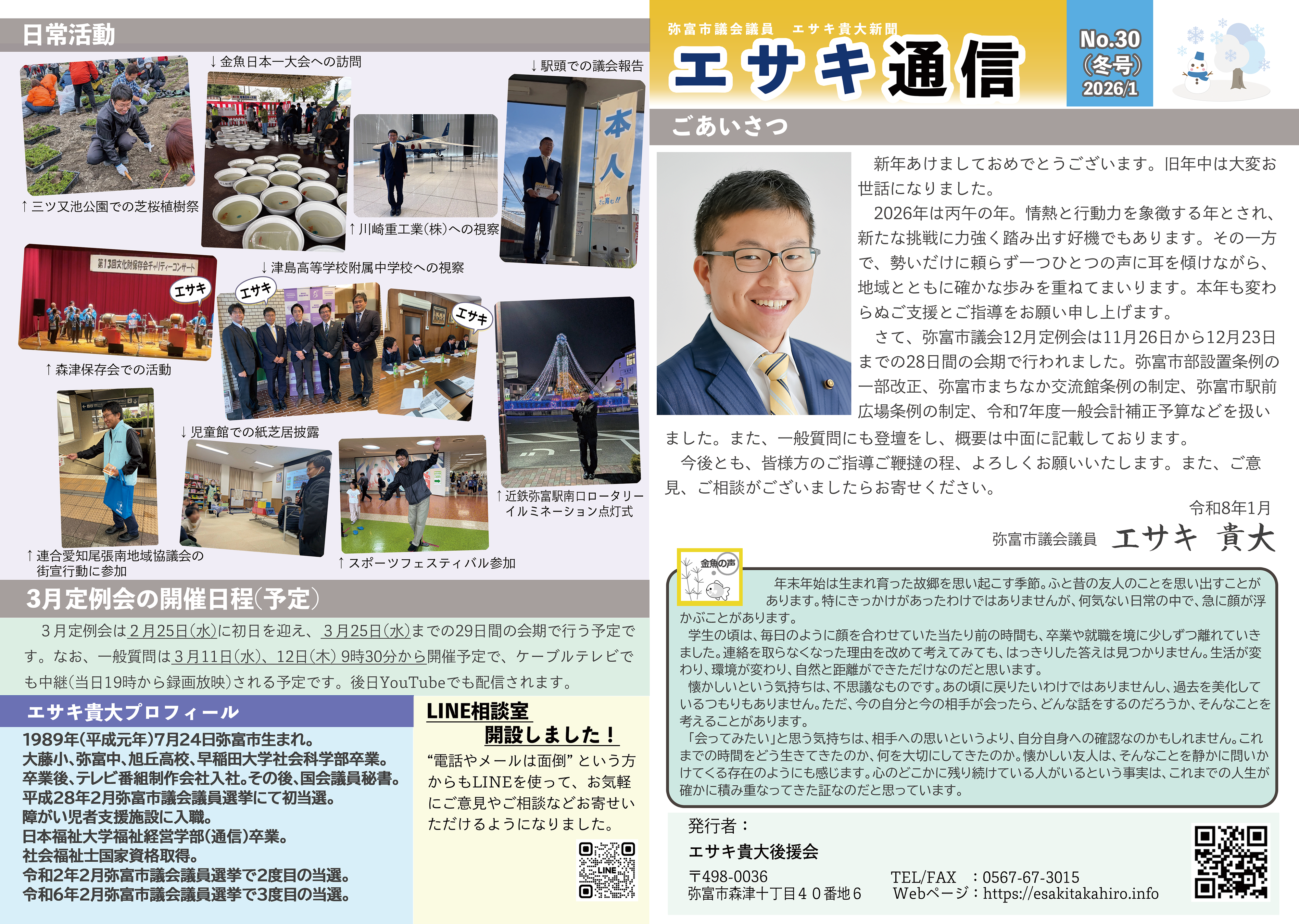 - 令和2年2月弥富市議会議員選挙で2度目の当選。